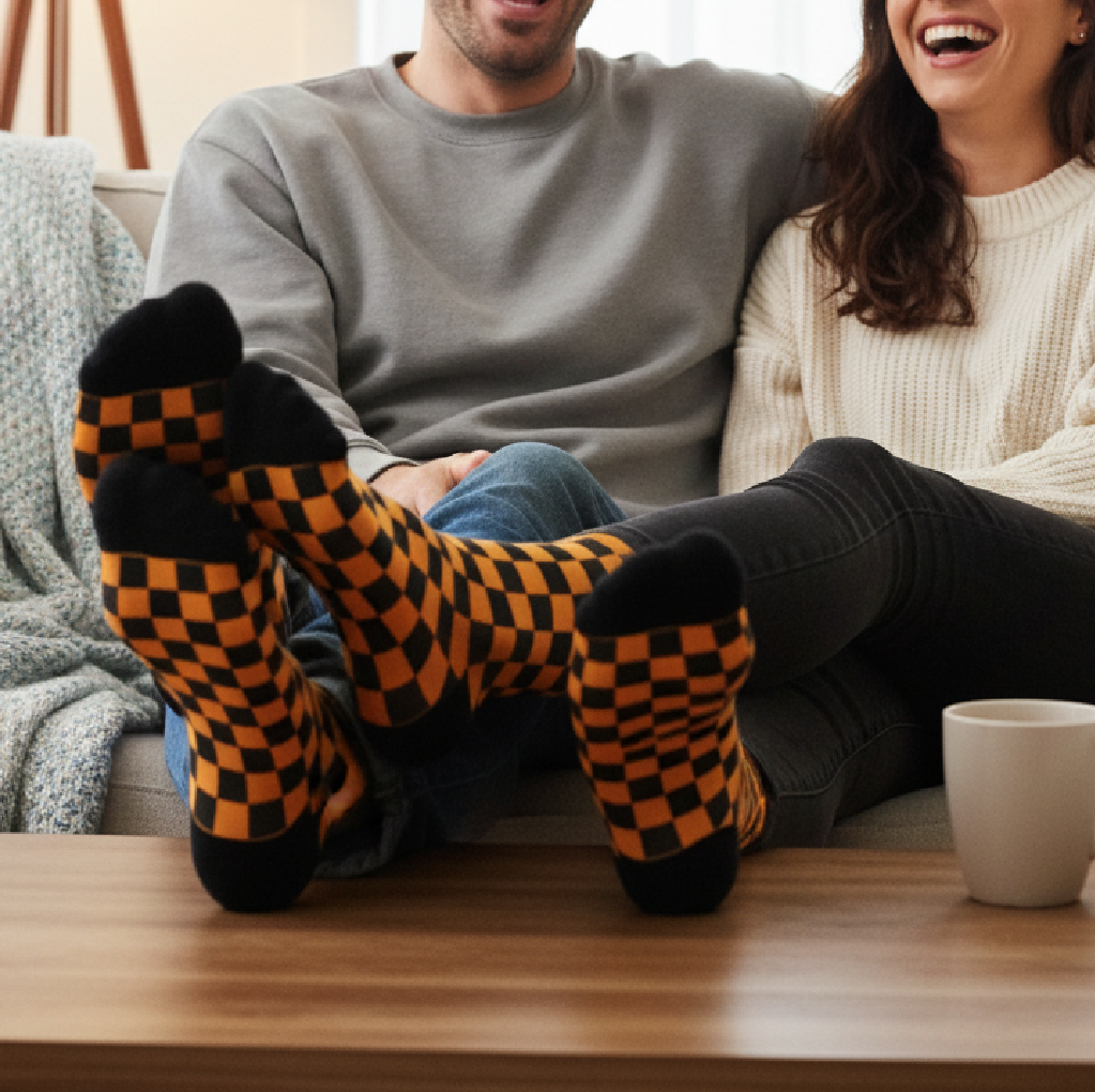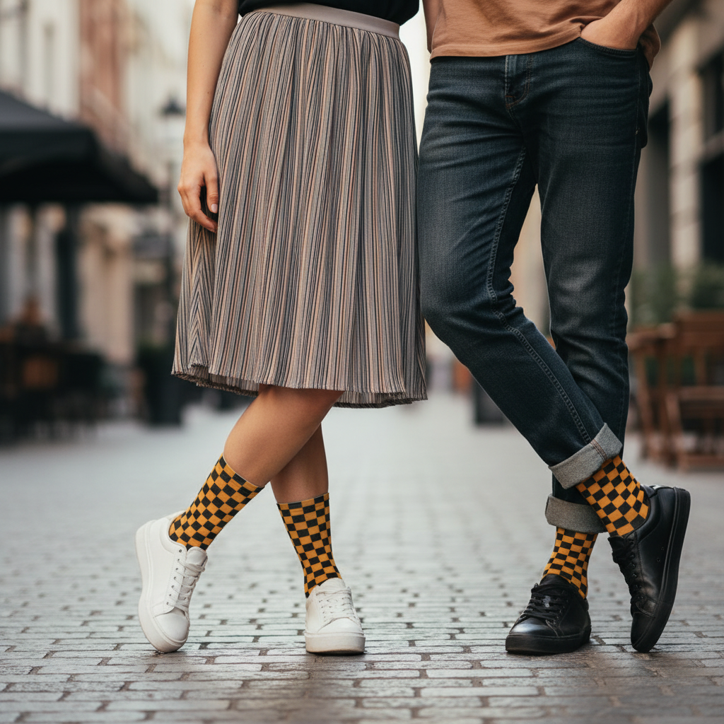 Turn any fit into pole position. These crew socks feature a bold yellow-and-black checkered pattern with black heel and toe accents, blending cushy comfort with everyday durability. Designed to fit universally from women’s size 5 US up to men’s size 13 US.